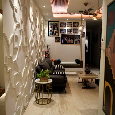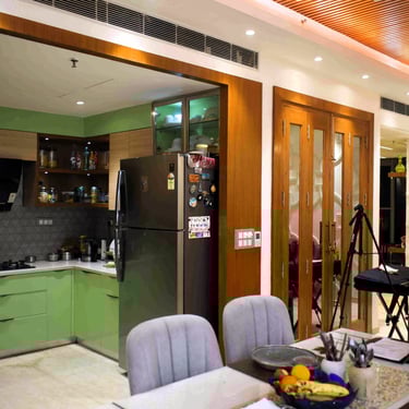 This Noida residence seamlessly blends modular functionality with custom-made designs, creating a home that is both stylish and practical.