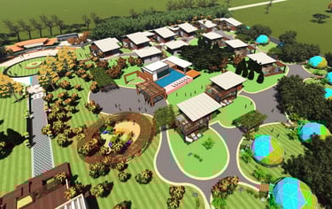 Spanning 15 acres, this luxury safari resort is a seamless blend of sustainable architecture, refined interiors, and immersive master planning. The geodesic luxury pods, crafted with locally sourced materials and passive design strategies, offer panoramic views while ensuring minimal environmental impact.