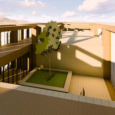 The architecture embraces universal design principles, featuring step-free pathways, wide corridors, and ergonomic living spaces. Private residences are designed for comfort and dignity, with large windows, natural ventilation, and warm, earthy materials that create a welcoming atmosphere. Common areas, including wellness courtyards, therapy gardens, and social lounges, encourage interaction while maintaining privacy.