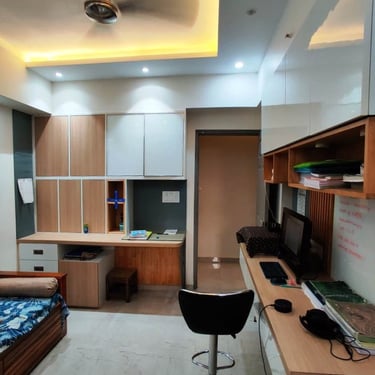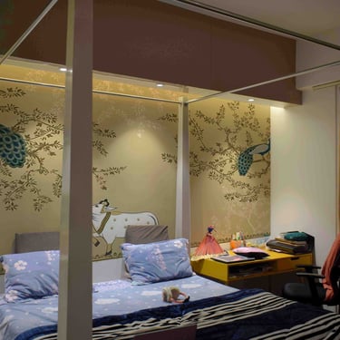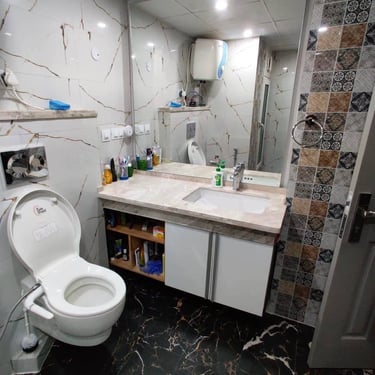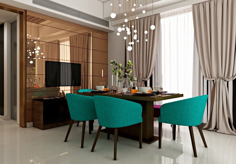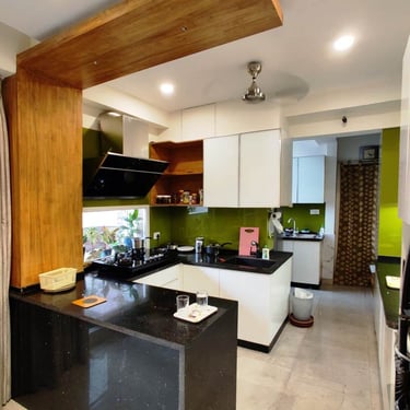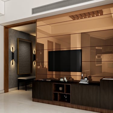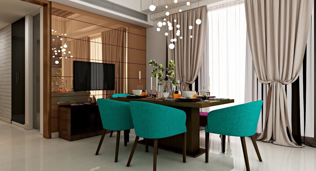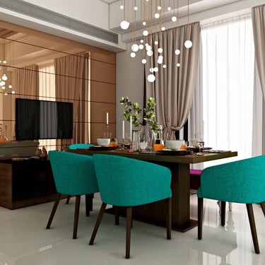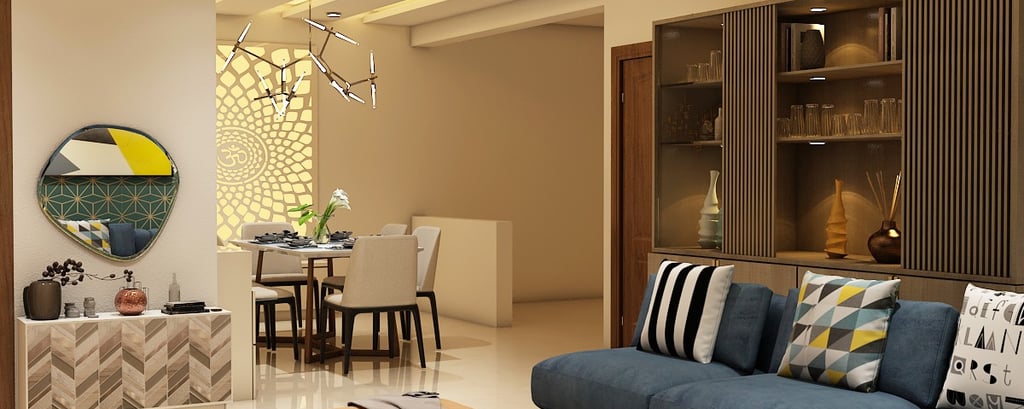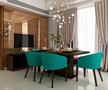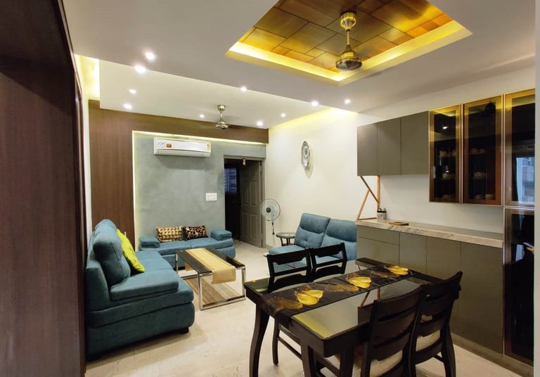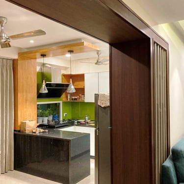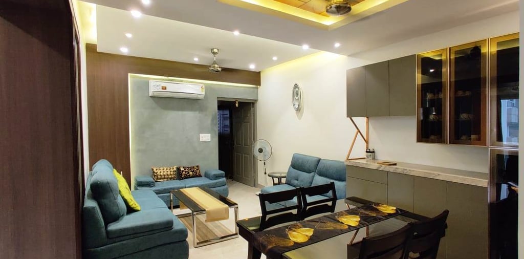 Strategic civil modifications opened up the kitchen and dining area, creating a wide, airy, and seamless flow between spaces. Ample hidden storage solutions, including sleek concealed wardrobes, enhance functionality while maintaining a clutter-free aesthetic.