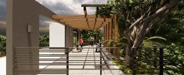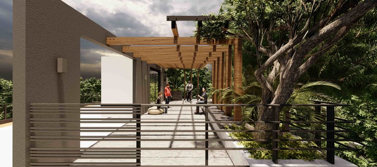 Designed for the hospital owner seeking a peaceful retreat within the premises, the residence balances privacy with seamless connectivity.