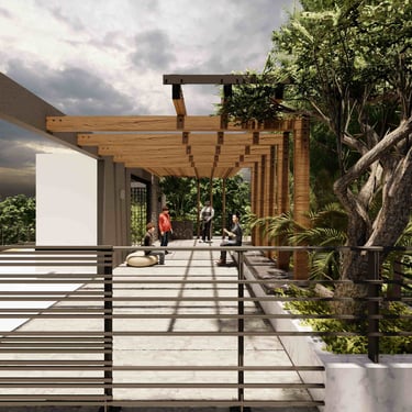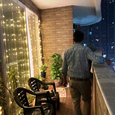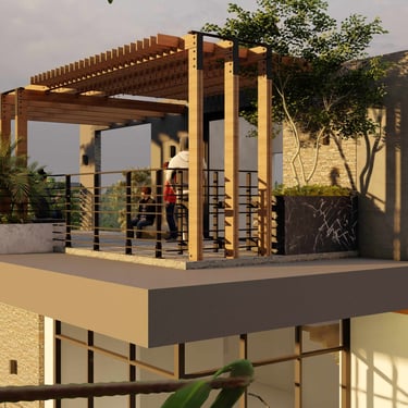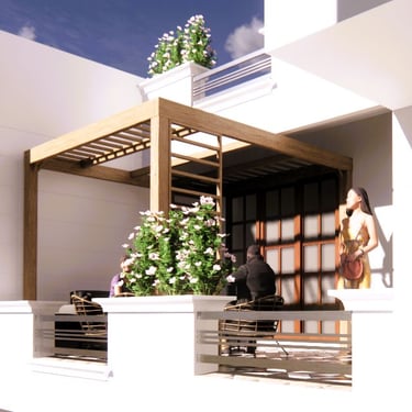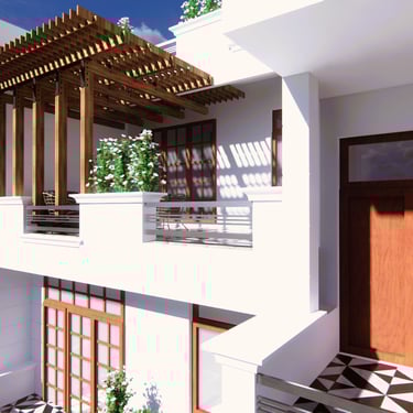 Perched atop a bustling hospital complex in Alwar, this thoughtfully designed top-floor and terrace conversion transforms an unused space into a serene and functional home for a family of four.