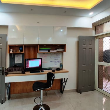 This Noida residence seamlessly blends modular functionality with custom-made designs, creating a home that is both stylish and practical.