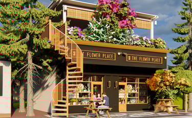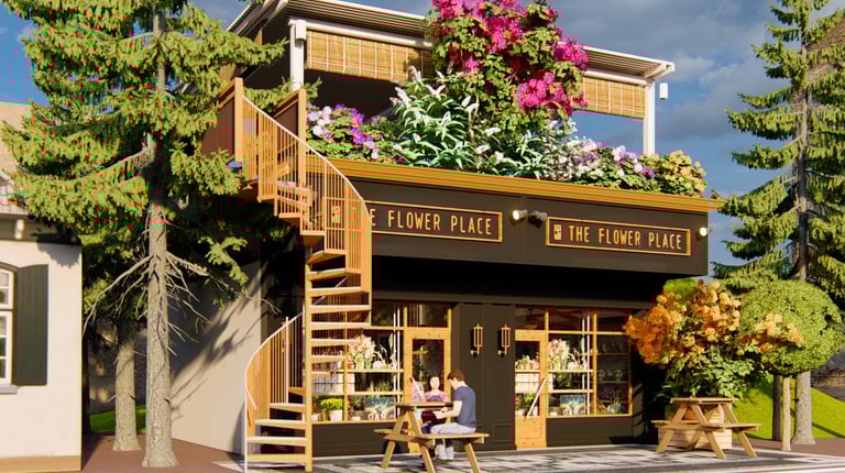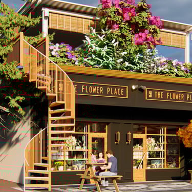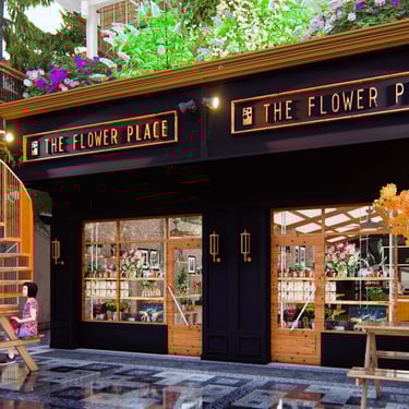 Tucked into a quaint street in Dehradun, this flower shop café blends nature, charm, and warmth in a seamless design. The storefront, adorned with lush floral displays, features glass windows framed in wood and metal, inviting passersby into a vibrant yet cozy space.