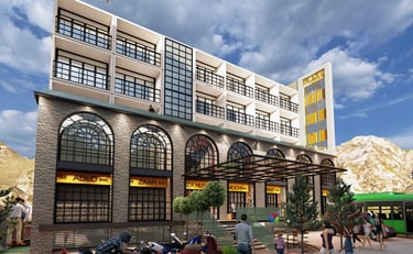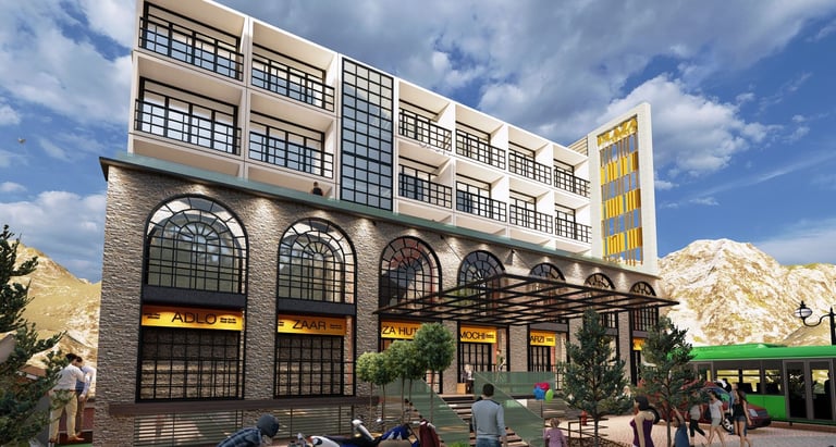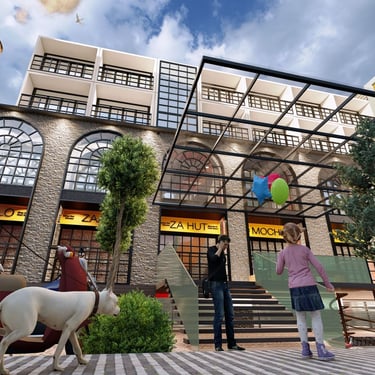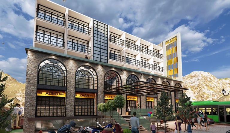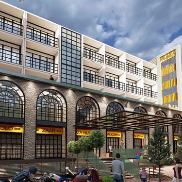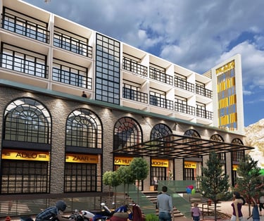This commercial plaza in Alwar is designed for maximum functionality and aesthetic impact, featuring a simple yet bold façade that ensures a strong visual presence. Its efficiently planned leasable floors offer flexible spaces for businesses, while the open terrace party floor provides a dynamic social hub with panoramic views of the Aravalli Range.