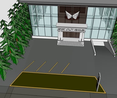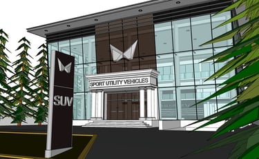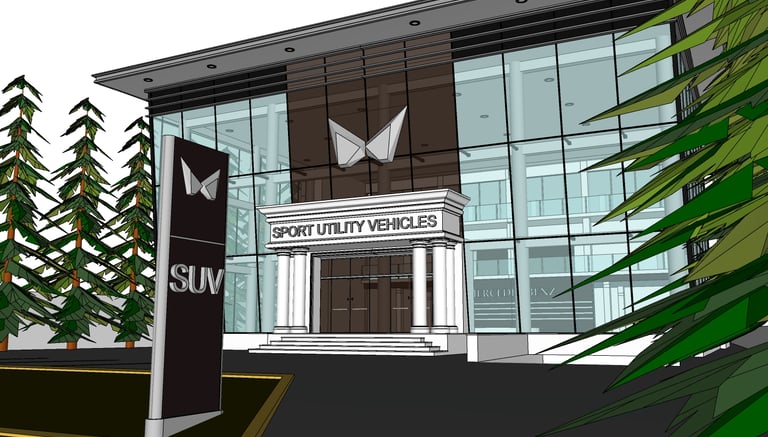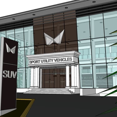 Designed for impact and functionality, the façade embodies precision and performance, reflecting the essence of the automobiles within.